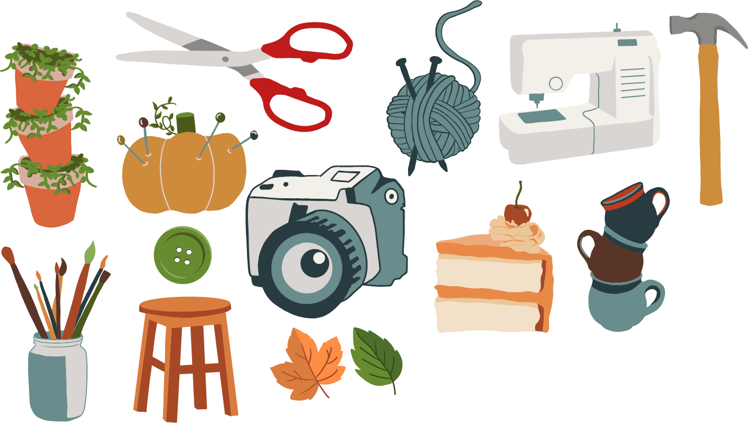 Focus: To create a collage of different crafting tools, adding depth with texture and shadow.